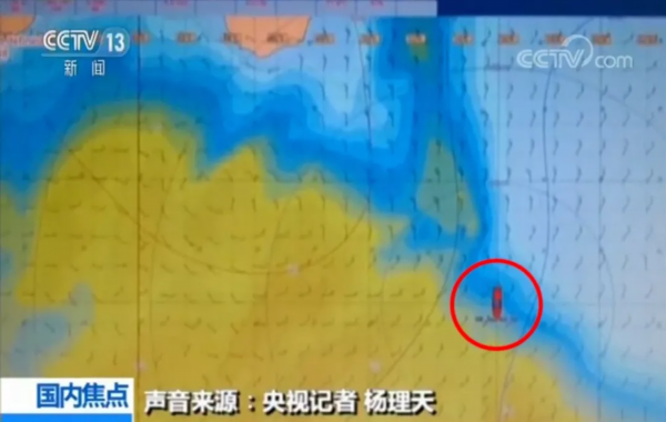 从这张气象图可以看到,黄色区域是气旋,红色的小船就是探索一号,气旋是迎面而来的,今天是个很好的下潜机会,我们马上就要冲进去了。