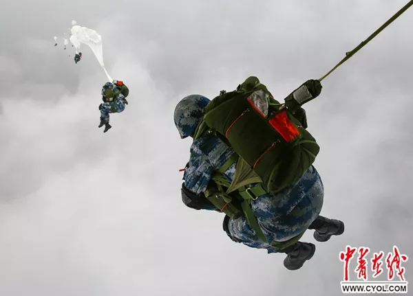 训练开始前,天气越来越阴沉,空中能见度降低,但训练计划维持不变,一架架战鹰按计划准时抵达。在战友们的加油声中,新训女兵信心满怀地登上飞机。“大家要大胆离机,离机时一定要三步走稳,你们是最棒的!”飞行过程中,为了减缓女兵们的紧张情绪,投放长任津再三提醒动作要领,并组织大家高唱《空降兵战歌》,不停加油鼓劲儿。