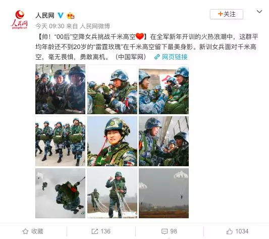在全军新年开训的火热浪潮中,这群平均年龄不到20岁的“雷霆玫瑰”巾帼不让须眉,在千米高空书写“兵之初”的最美篇章。