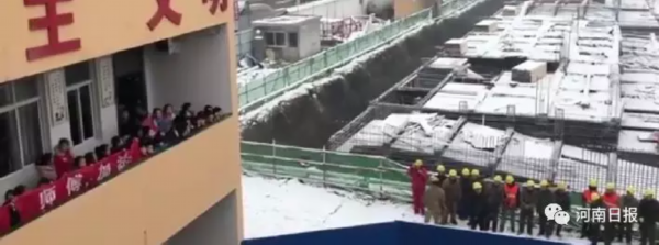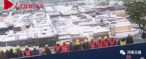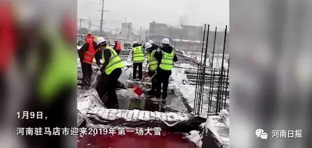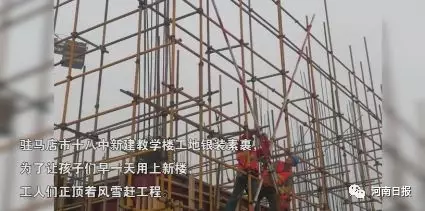 望着风雪中仍未停工的工地