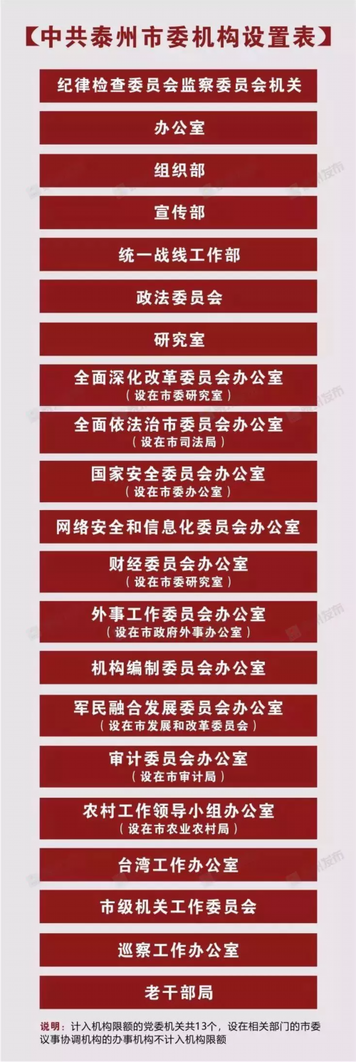 《泰州市机构改革方案》经中共江苏省委、江苏省人民政府批准后,今天披露。
