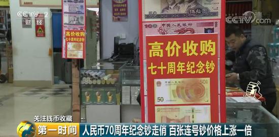 人民币70周年纪念钞走俏 百张连号钞上涨一倍