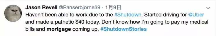 还有位政府雇员说:政府关门,我没了工作。现在只能靠开Uber每天挣40美元。不知道如何支付医疗费用,还房贷的日子马上要到了。