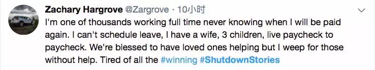 在社交媒体上、在美国主流媒体上,这样的故事还有很多很多。这些普通公务员有的需要养家糊口、有的需要看病就医、有的需要还房贷和信用卡,可现在很多人已经难以为继了。