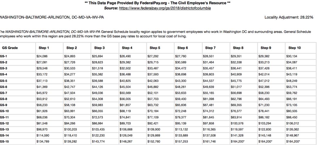 绝大多数美国政府职员的工资都是由一张统筹表决定的。这张表包括“统筹收入级别”和“收入等级阶段”两部分组成,前者决定了70%的收入,后者取决于个人在工作中的表现。而且,这张表格在每个州、每个市、甚至每个县都有所不同。比如,华盛顿哥伦比亚特区的政府职员收入比较高,但最低级别的只有2.4万美元。
