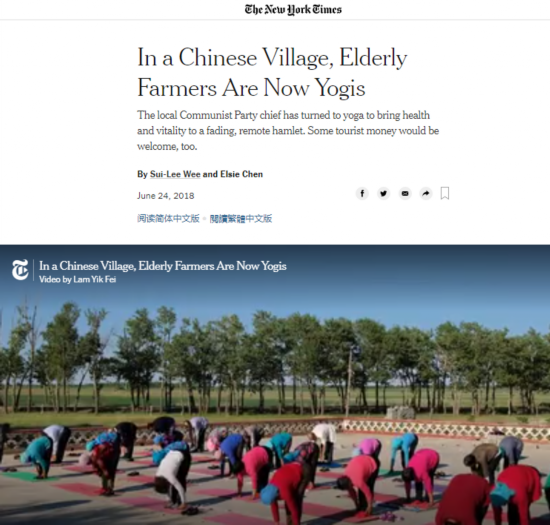 其实,美国《纽约时报》网站早在去年就曾报道过玉狗梁村村民练瑜伽的故事。报道称,玉狗梁村留守村民平均年龄为65岁,他们以养牛放羊以及耕种小块土地为生。这个逐渐老龄化的小村庄需要活力和激情。村干部卢文震为此提出了一个大胆的计划,让村民们练瑜伽。而在瑜伽的作用下,村民们节省了医疗费用。玉狗梁也因此受到了中国各大媒体的广泛关注。卢文震说,他希望借关注度的提升吸引更多游客。