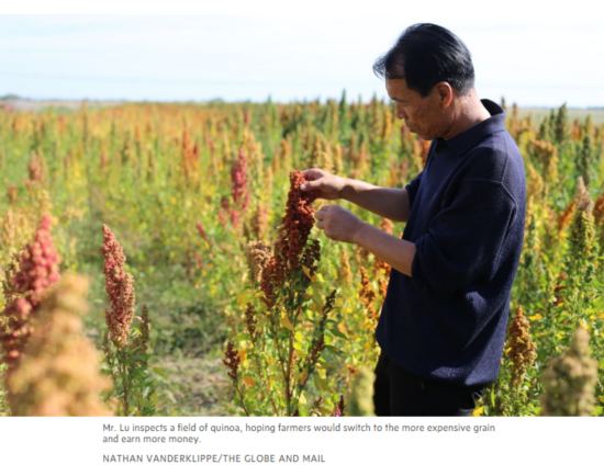 卢文震说服村民种植藜麦,以增加收入。图片来源:《环球邮报》网站报道截图