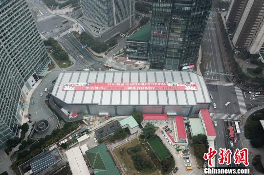 高楼林立中的上海最大室外封闭式工地。张亨伟 摄