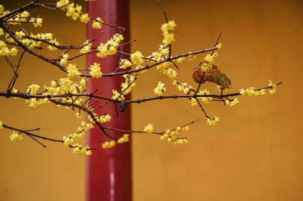 在太湖东山的紫金庵,有几株老蜡梅树,叶子还没来得及脱落,圆圆的花骨朵就已按捺不住早早地绽开了,花朵娇羞迷人,芳香四溢,使得冬日里的紫金庵别有一番韵味。