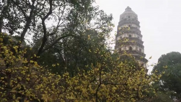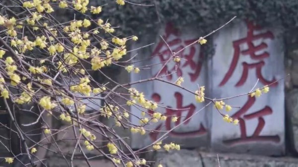 虎丘的蜡梅有近二十处,山前山后,塔前塔后,屋前屋后,盆景园内外,走廊角落……虎丘的蜡梅枝条繁密,花形又好,繁花似锦,一树蜡梅,一树金黄。