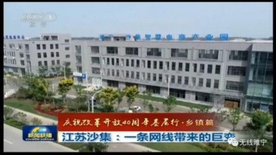2018年12月15日晚,中央电视台《新闻联播》栏目以《沙集镇:一条网线带来的巨变》为题,用时3分42秒专题报道了睢宁电商发展的富民成就。在《新闻联播》播出的一周前,央视《朝闻天下》栏目也对此进行了专题报道。