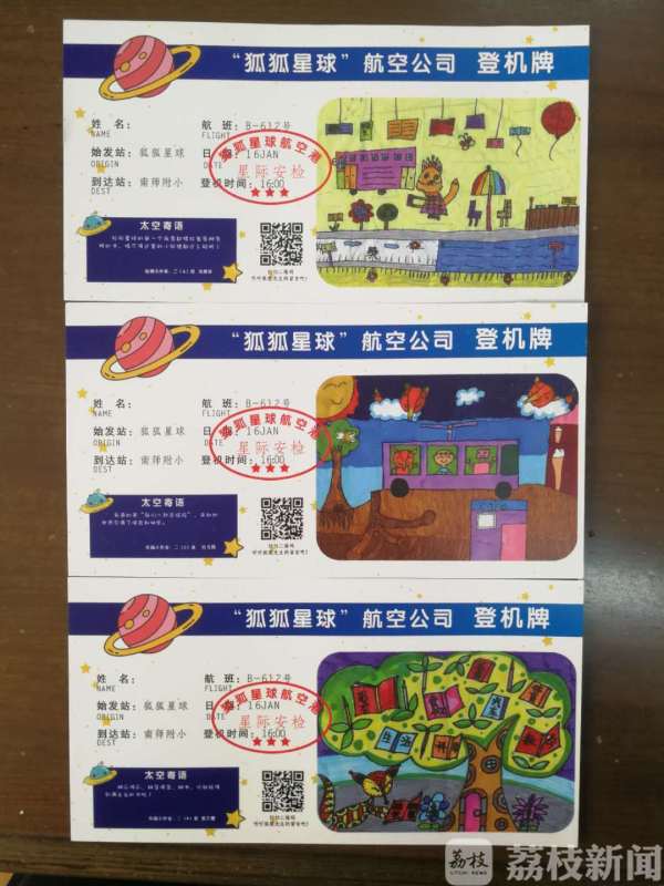 二年级期末考试主题叫“狐狐星球奇遇记”,整场考试是一个完整的故事:孩子们乘坐狐狐航空公司“B-612号”航班,到神秘莫测的狐狐星球找寻“吃书的狐狸”,带他重返地球。