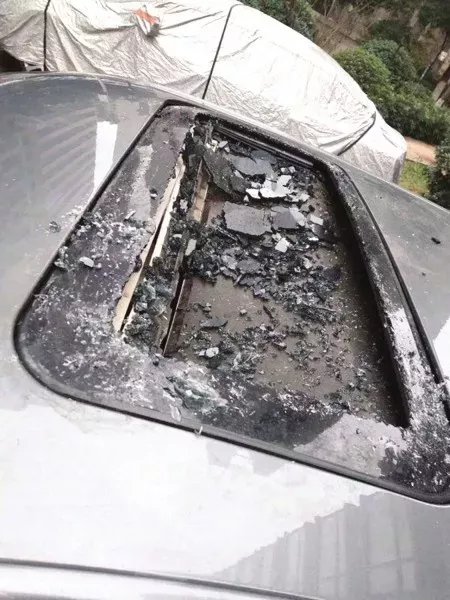 1月16日下午,开福区盛世荷园小区的一位住户,发现自己停在小区二栋楼下的私家车被砸了。车顶天窗玻璃被砸碎,车前挡风玻璃被砸裂。