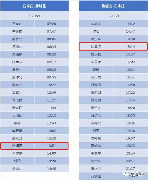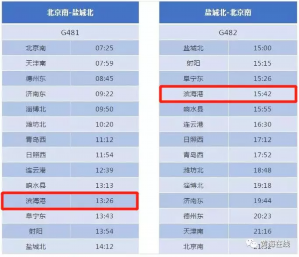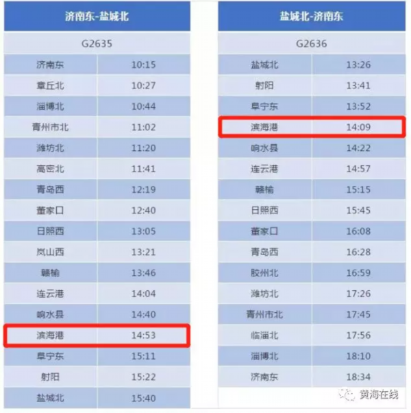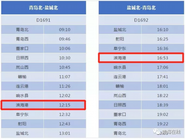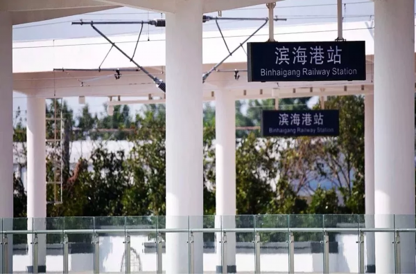 2018年12月26日,青盐铁路开通运营,标志着青盐线上功能配置最全、建制规格最高、与城市融合最紧密的县级站——滨海港站正式投入使用,滨海从此迈入“高铁时代”。