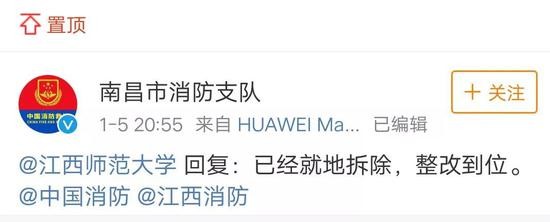 @南昌市消防支队 随后发微博表明,已就地拆除,整改到位。?
