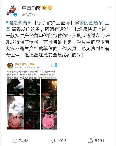 此前“无证电焊“引发质疑,中国消防力挺“爷爷”