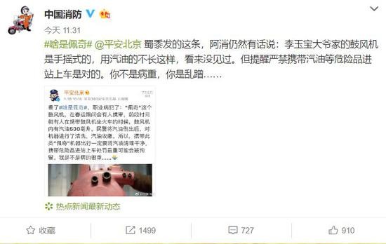 两位的职业病都是为了大家能够平平安安回家过年,然而这已经不是@中国消防 第一次“犯病”了!