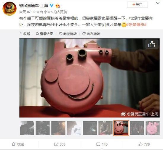 视频走红后,网友在被爷爷对孙子的深情感动的同时,也有不少人希望照此亲手做一个佩奇,视频同款佩奇也已出现在部分网购平台。但关于电焊工艺的安全性,上海市公安局官方微博18日早晨发布消息:有个能干可爱的硬核爷爷是幸福的,但警察蜀黍也要提醒一下,电焊作业要有证,深夜烧电焊光线不好也不安全。一家人平安团圆才是年。