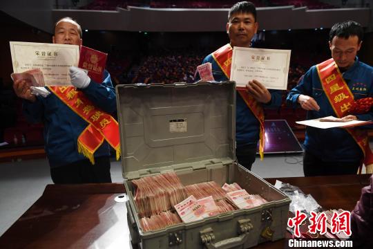 中新网兰州1月18日电 (崔琳 史静静)1月18日,453名星级的哥的姐身着深蓝色出租车驾驶员制服,胸前披大红花及荣誉绶带,手戴白手套,在兰州大学本部大学生活动中心礼堂接受表彰,并领走了近百万元现金巨奖。