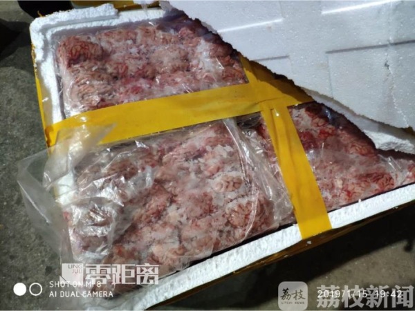 1月15日晚上19时,交警在南京二桥收费道口例行检查时,一辆山东牌照的大客车进站接受检查,车舱下部的行李箱内竟然装有四大箱猪腰子,一箱猪脑,总重量达到1吨左右,现场的栖霞区动物卫生监督所工作人员初步核实该批猪肉没有检疫证明,属于私自运输,将货物收缴并安排进行消杀。