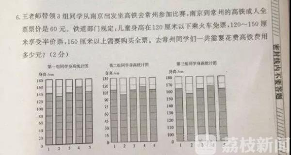 王老师带领3组同学从南京出发坐高铁去常州参加比赛,南京到常州的高铁成人票票价是60元。铁道部门规定:儿童身高在120厘米以下乘坐火车免票,120~150厘米享受半价票,150厘米以上需要购买全票。去常州同学们一共需要花费高铁费用多少元?附三组同学身高统计。