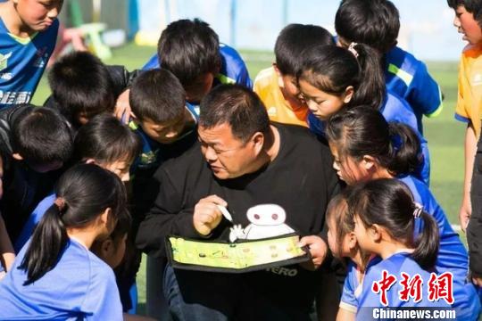 图为徐召伟为足球队员们讲解足球“战术”。 石河子大学党委宣传部供图 摄