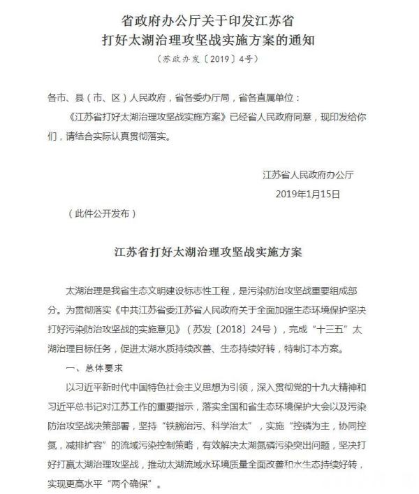 荔枝新闻记者从省政府办公厅官方网站获悉,省人民政府已经同意印发《江苏省打好太湖治理攻坚战实施方案》。方案有哪些亮点和内容?记者来帮你“划重点”。