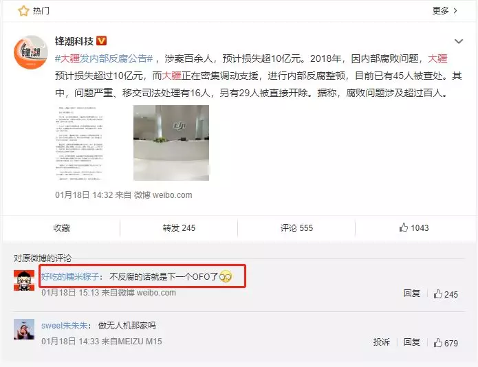(原标题:贪腐损失超10亿!大疆晒出自家丑陋,45人被查处,不少人将面临牢狱之灾)