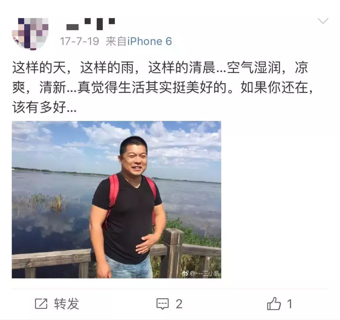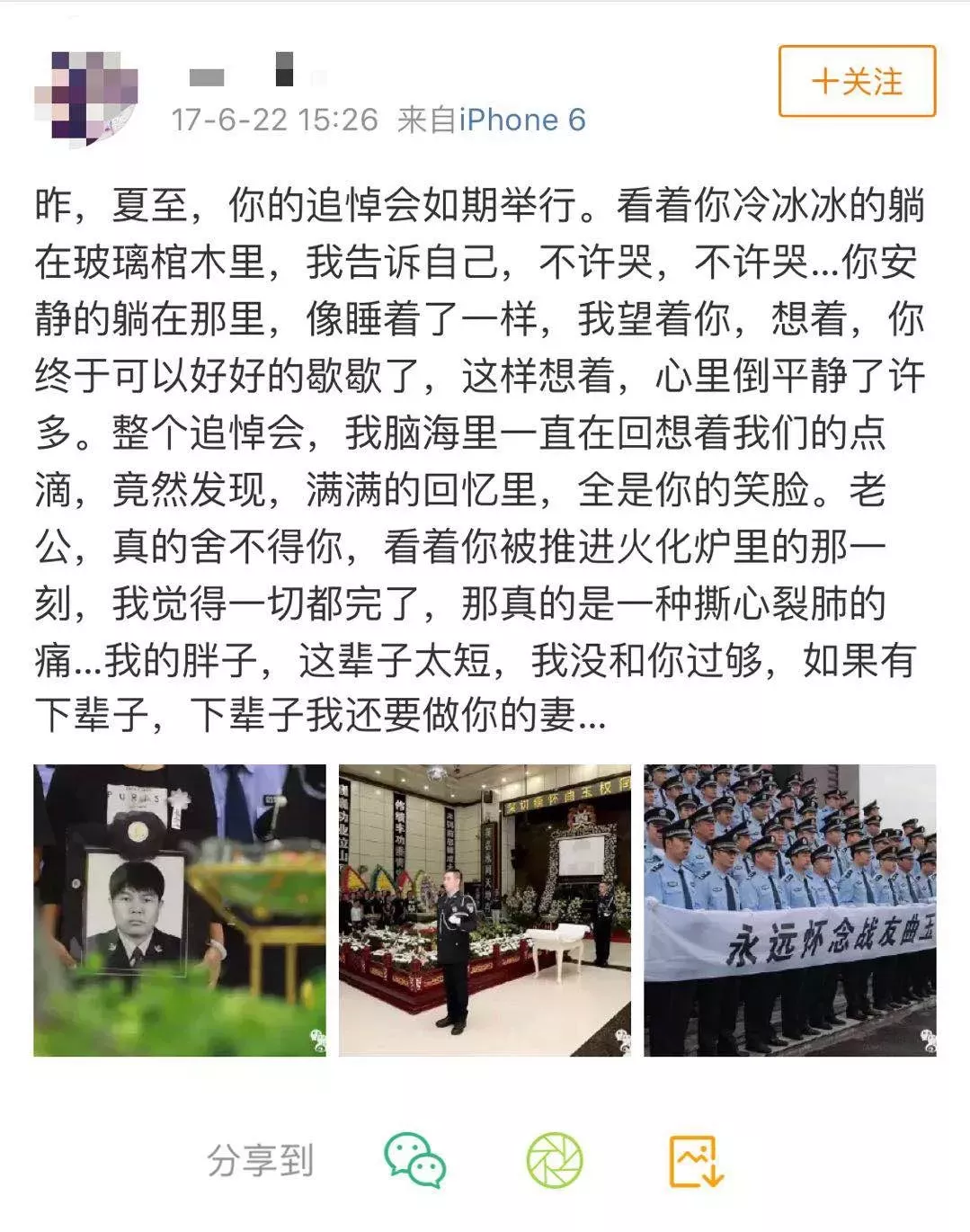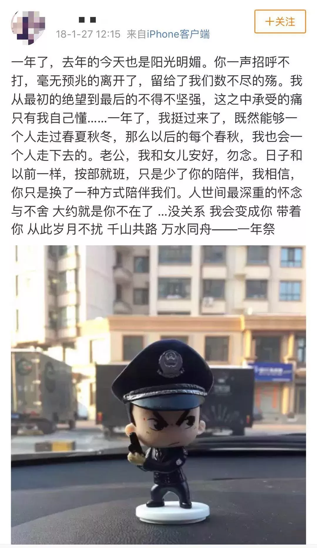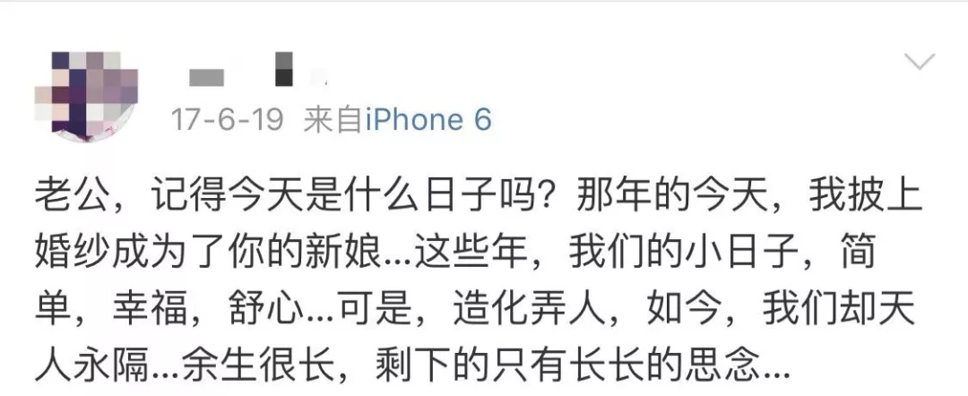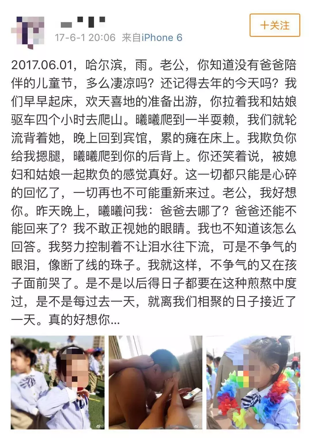 6月18日,转发中央政法委官方微博@中国长安网“没有父亲的父亲节”,因为看到了亡夫抱着孩子的照片。