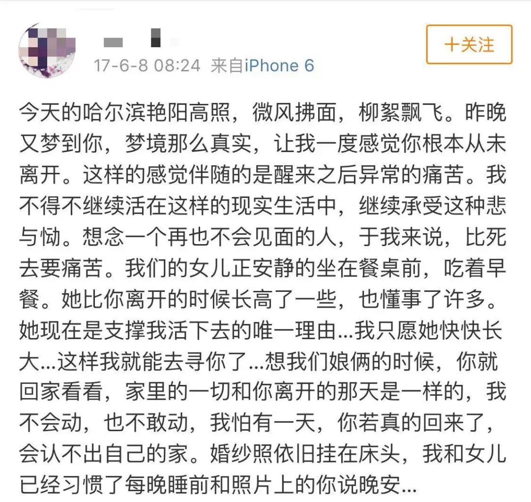 后面微博再没有了。她的微博并没有人看,亡夫更不可能看到。
