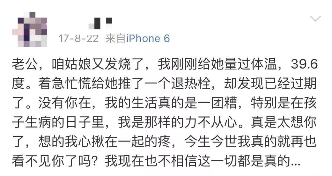 8月30日凌晨,“想你……泪流满面,肝肠寸断”。截图上,她在丈夫的微信中一次次呼唤着爱人——
