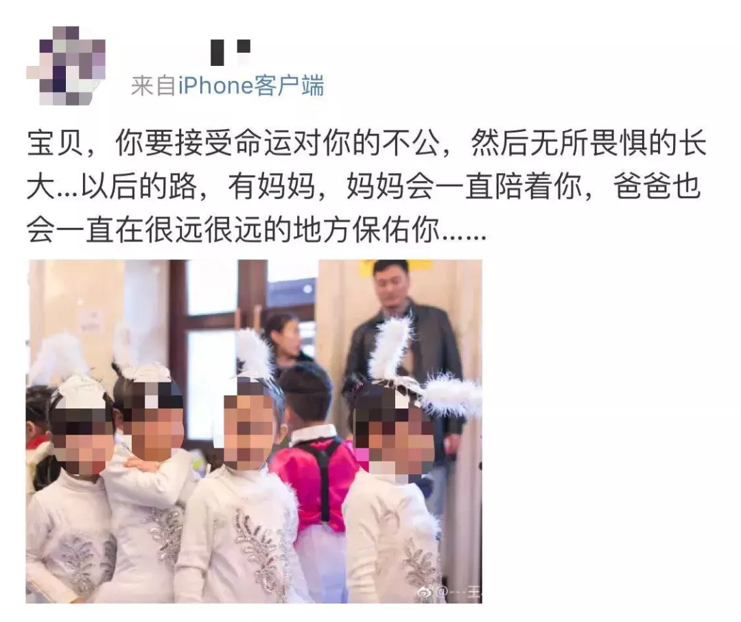 18年1月5日,大概是女儿参加舞蹈演出,鼓励女儿无所畏惧地长大,妈妈会陪着你,爸爸不能陪着你了,他只能保佑你。