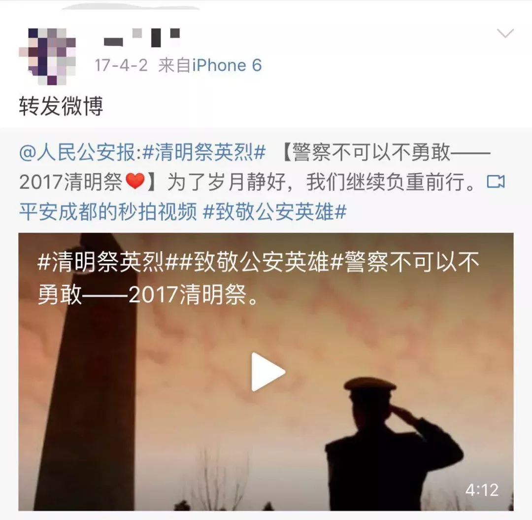 4月2日,转发人民公安报内容,“警察不可以不勇敢”