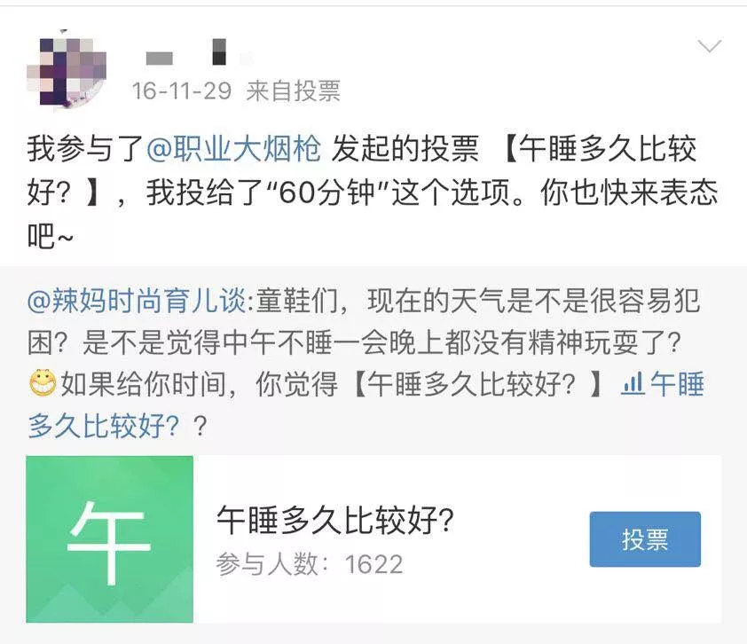16年11月29日,她还参与了“午睡多久比较好”投票,她希望是60分钟。接下来的12月、1月、2月都没有动静。