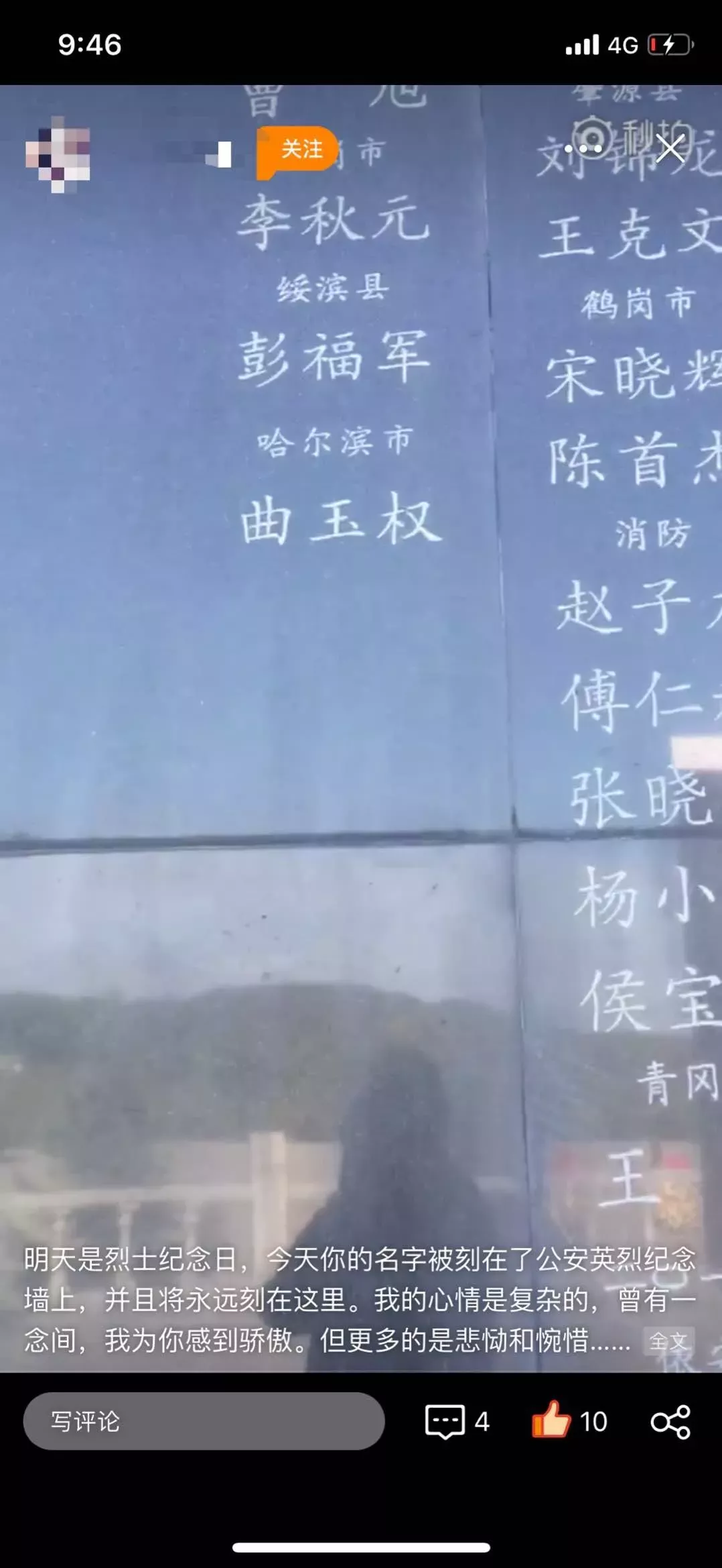 9月29日,看到亡夫的名字被刻在英烈纪念墙上,骄傲之外,更多的是悲恸和惋惜。