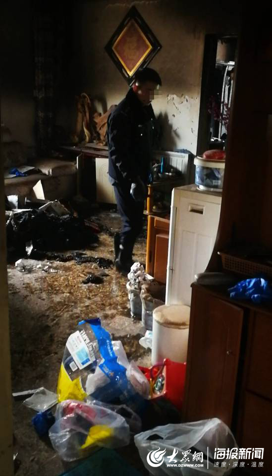 19日上午,海报新闻记者在事发家庭门口闻到了烧焦的糊味弥漫,还看到当事人家中防盗门已经变形,墙面变黑,屋子里的东西已经被清理到了楼道里。