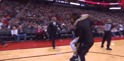 第二节进行到7分15秒,哈登持球进攻,哈特在防守的时候,怕被哈登造犯规,直接将双手背在身后去防守,结果被哈登轻易突破过掉,然后抛投得分,还造成史蒂文森犯规。