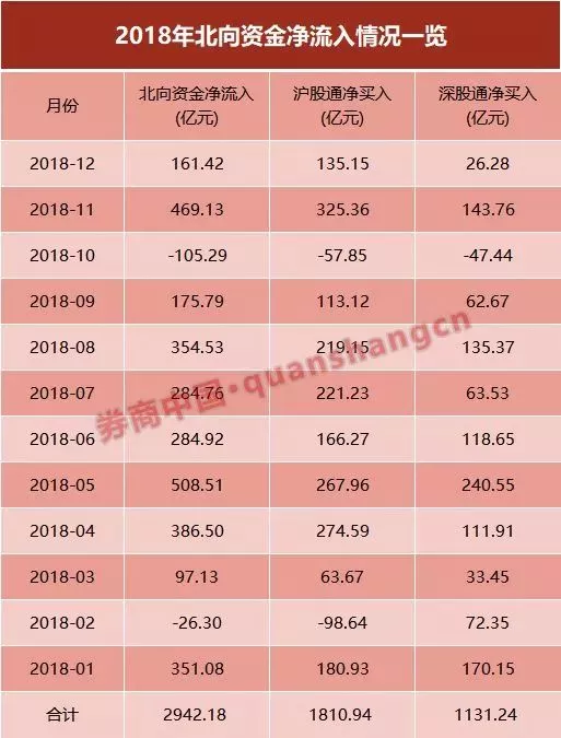 数据显示,2018年北向资金累计净买入2492.18亿元,较2017年增长约47%,创历史纪录。具体来看,只有在2月份和10月份北向资金出现净流出情况,其余月份均是净流入。