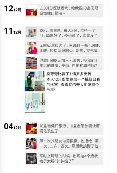 继权健、华林之后,直销巨头“无限极”也卷入舆论漩涡。随着媒体不断曝光,一些受害者的经历也逐渐为外人所知,在名为“无限极受害者家属群”的QQ群里,上百位购买过该品牌产品的消费者或其亲属聚集在此,互相诉说他们服用无限极产品后的遭遇并希望维权。