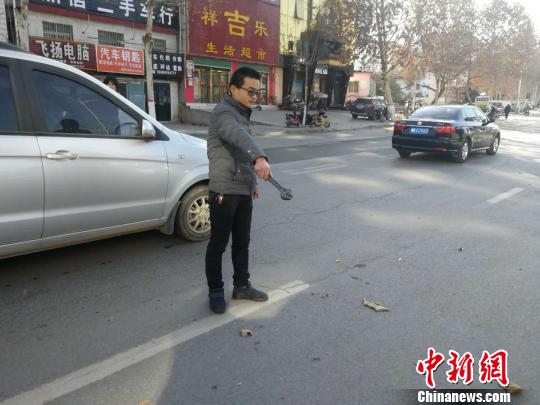 图为目击市民讲述事发时情况。 王祎 摄