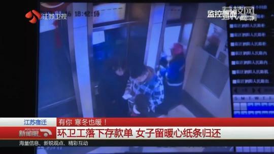 1月16日晚上,江苏宿迁环卫工人宋阿姨,在银行的自助柜员机前取款时,不小心把钱包落下了。