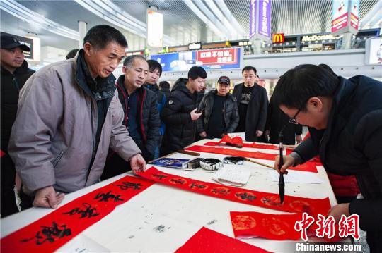 图为春运首日,铁路宁波站送“祝福”。 丁继敏 摄