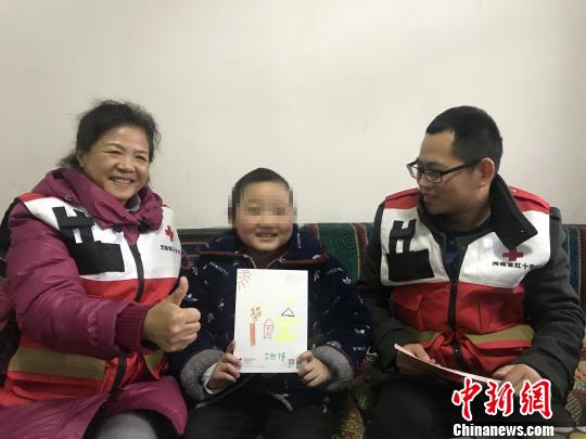 图为春节前夕,河南省红十字会志愿者带着礼物慰问贫困白血病、先天性心脏病患儿。 韩章云 摄