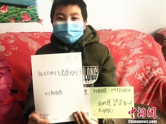 1月20日,在河南省巩义市北山口镇某村,13岁的刘书鹏戴着口罩在家里复习功课,再过两天他就要进行期末考试了。而河南省红十字会的工作人员、志愿者们带着学习用品、益智玩具以及儿童白血病康复书籍的到来,让这个很少与陌生人接触的少年欣喜不已。
