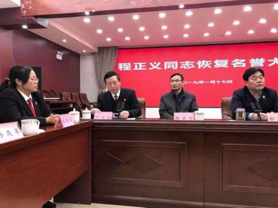 2019年的1月17日,在濮阳市工业园区,一审判处其有期徒刑10年的鹤壁市鹤山区人民法院,召开“恢复名誉大会”公开道歉。