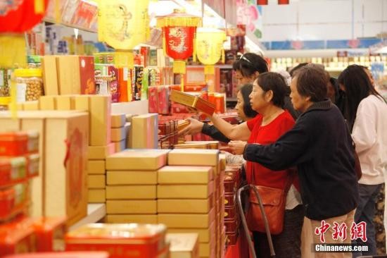 资料图:超市内商品吸引众多顾客驻足选购。 中新社记者 余瑞冬 摄