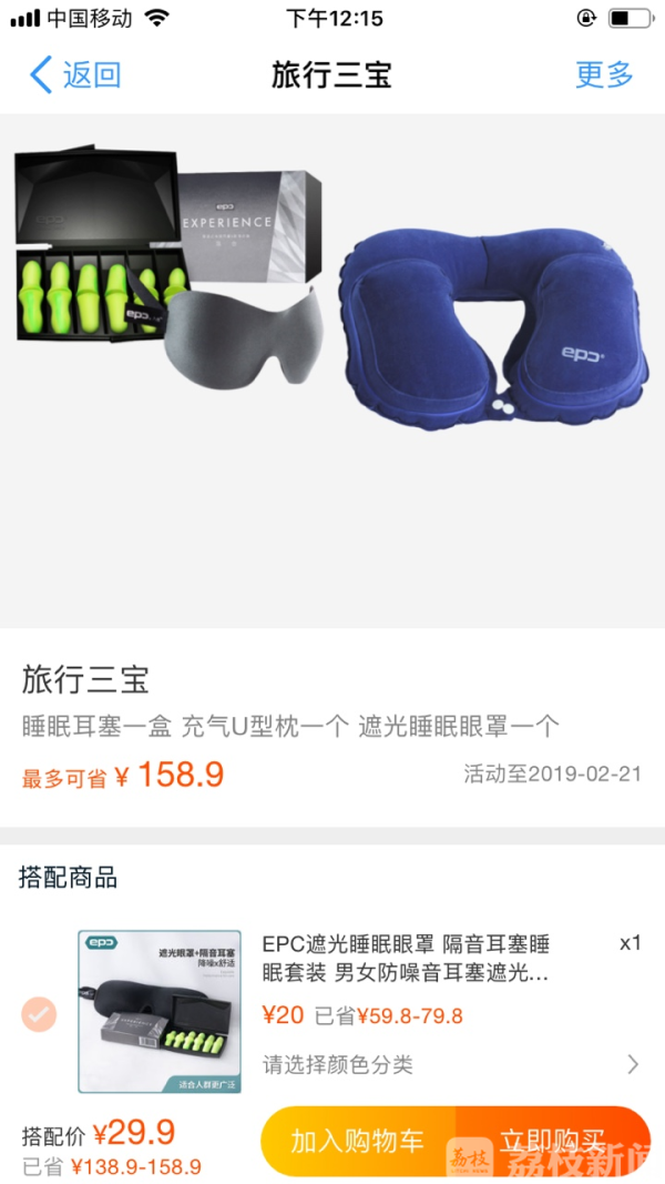 当然,精明的商家不会放过“春运”这个大好节点,他们在天猫上推出了一系列暖心套餐来抚慰出门在外的游子。包含了眼罩、U型枕和耳塞的“旅行三宝”套餐,能让你一键下单就能买齐旅途所需。