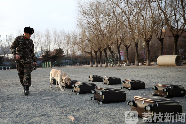 李佳硕正在带领搜爆犬进行搜爆训练 梁永刚摄影