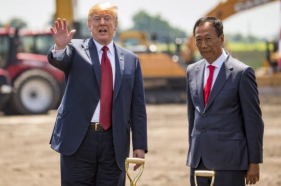 去年6月,特朗普总统和郭台铭在富士康位于威斯康星州的一家工厂举行了破土动工仪式。