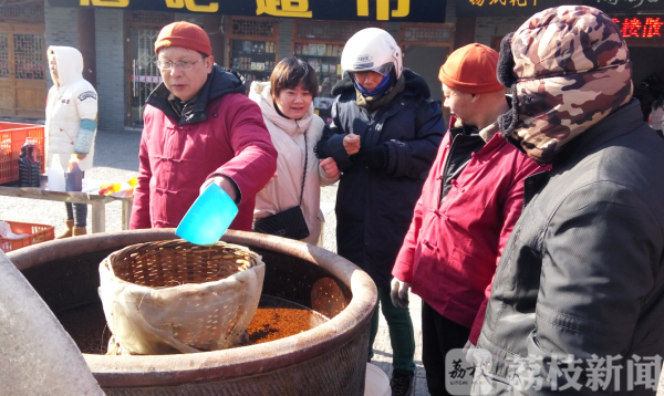 精选上等面粉经过蒸熟、接种,制成面曲后,再投入百年老缸中。经过200天以上的“日晒夜露”纯天然发酵,才成就了一滴滴“色如油、甜又香、挂碗边”的酱油。现场市民少的打了七八斤,多的打了几十斤。据了解,本次打酱油为期10天,从1月20日开始到1月30日结束。
